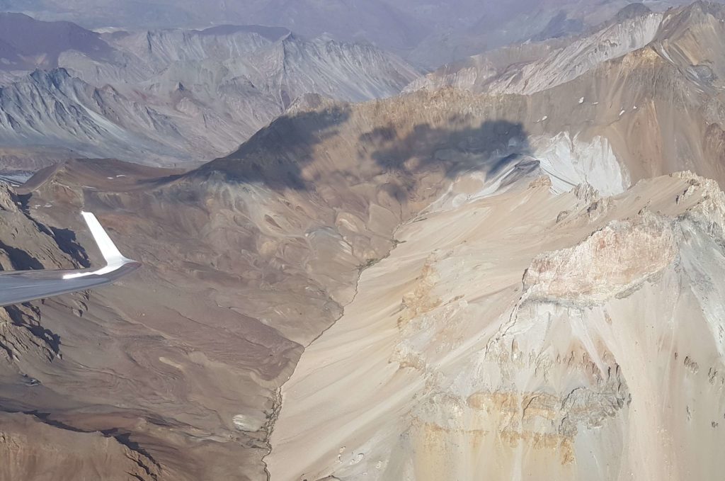 Samstag bis Dienstag wurde das Wetter immer stabiler. Dadurch war auch die Ausbeute eingeschränkt, der «Plausch» aber nicht. Eines meiner Ziele war der Aconcagua, den konnte ich auf 6500m umrunden. Mit dieser Höhe und mit Hilfe einiger kleiner Wellen ergab sich trotz Wind von über 70km/h eine recht lange Gleitstrecke.