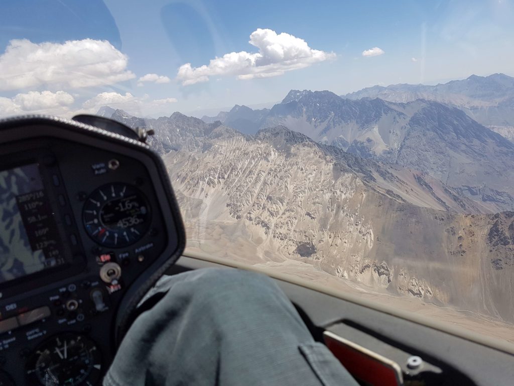 Was ist anders als zum Beispiel in den Alpen. Ich musste mich erstmal an die grösseren Höhen gewöhnen ans immer Sauerstoff nehmen. Je nach Gebiet ist man mit 4500m auf Pässe und Durchlässe angewiesen wie bei uns auf 2800m. Häufig ist es besonders weiter unten recht ruppig, es ist auch stärker als bei uns. Die Wolken stehen manchmal weit auseinander und sind nicht immer zuverlässig, besser ist es, wenn man sich nach den Graten und dem Wind orientiert. Die Wolkenbasis ändert deutlich je nach Ort. Auch schwappen oft Schauer aus Argentinien herüber, die dann ein westliches Ausweichen nötig machen. Im Westen ist es meist wolkenlos un diesig. Es gibt einige sehr hoch gelegene Täler mit flachen Böden und unklarem Abfluss. Hier muss man aufpassen. Eine vernünftige Landkarte habe ich bis jetzt noch nicht gefunden, jeder bastelt sich was.